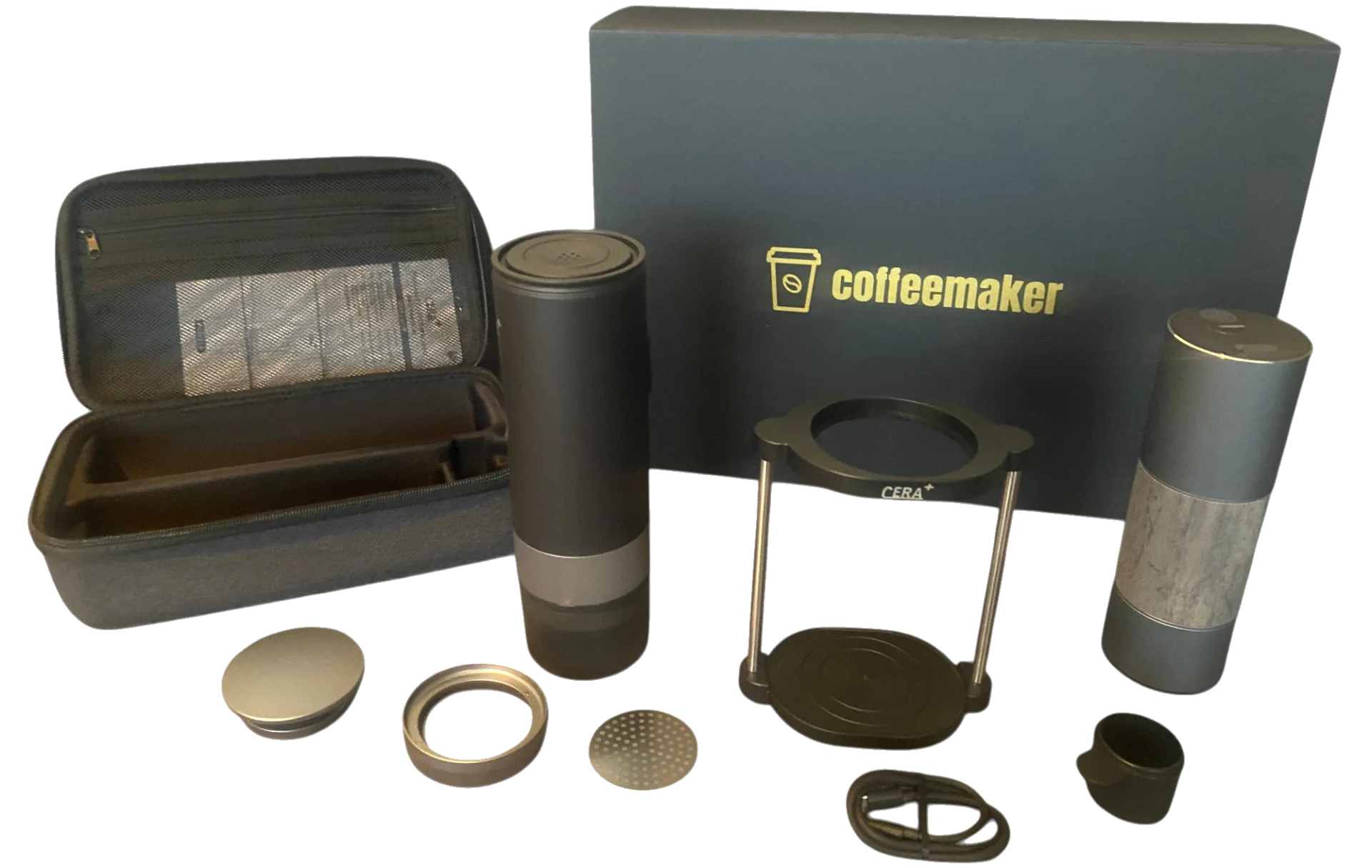 A tökĂ©letes ajĂĄndĂ©k a kĂĄvĂ© szerelmeseinek: elegĂĄns mĂĄgneszĂĄras Coffeemaker dĂszdobozban talĂĄlhatĂł a PCM04 hordozhatĂł kĂĄvĂ©fĆzĆ, a precĂz kĂĄvĂ©ĆrlĆ, a tömörĂtĆ, a stabil fĆzĆĂĄllvĂĄny Ă©s 500g prĂ©mium szemes kĂĄvĂ©kĂŒlönlegessĂ©g. Kompakt, stĂlusos, teljes eszpresszĂł Ă©lmĂ©ny